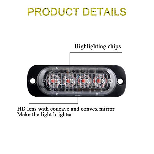 Alta luminosità: ogni unità è dotata di 4 chip LED ad alta intensità e l'obiettivo trasparente può fornire colori più vivaci. È super visibile anche durante il giorno. Ampio angolo di visione e luce stroboscopica ad alta intensità, 2 volte superiore a prima! Migliorare la sicurezza di guida ed evitare incidenti stradali.
