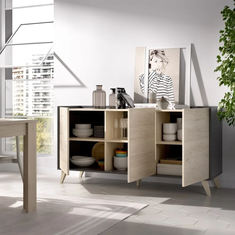 3 Door Sideboard NESS graphite and NATURAL AEKIT cheap living room furniture