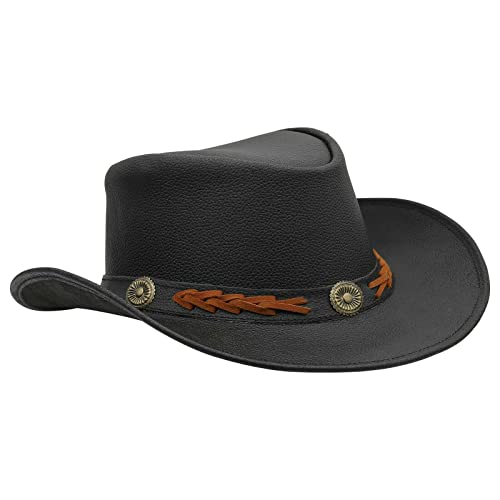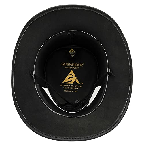 SideWinder Cappello Cowboy Western Australiano Cappelli Pelle Scamosciata di Cuoio modellabile Stile Outback Vintage Tesa Nero Tan Tutte Le Taglie