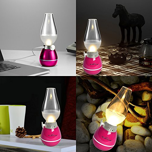 Sidiou Group Creativa lampada dimmerabile Retro lampada a cherosene spia di controllo colpo Nostalgia della luce di notte LED cherosene LED del desktop mobile ricaricabile lampade USB (rosa)