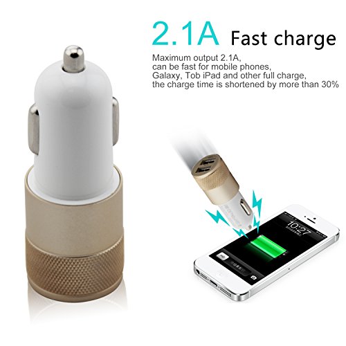 Sidiou Group Multifunzione 12v 24v 2.1A pallottola 1.0A alluminio doppia porta USB universale Caricabatteria da auto per normale USB Phone (oro)