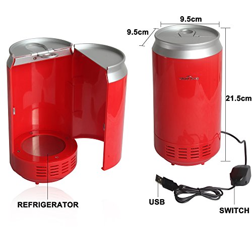 Sidiou Group, pratico mini frigorifero USB di colore rosso, raffredda o riscalda bibite in lattina 2