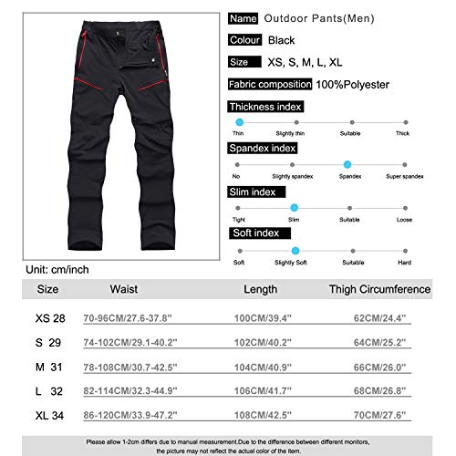 Sidiou Group Primavera Autunno Sottile Pantaloni da Trekking Uomo Estivo Pantaloni Impermeabili Quick Dry Traspirante Pantaloni da Arrampicata Escursione Pantaloni Softshell (Nero, M(31"))