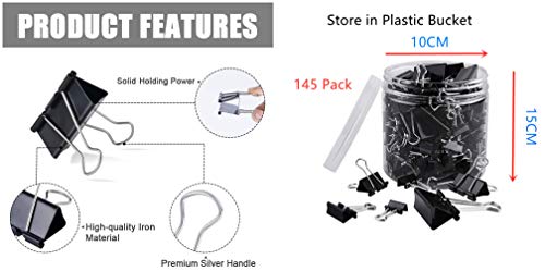 SidiOutil Premium 145 pezzi graffette in carta da ufficio graffette in metallo nero set di diverse misure per ufficio, scuola e notizie domestiche