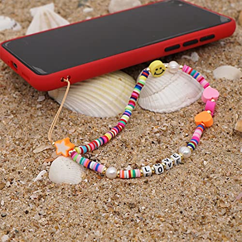 SIDQHICAC 2Pcs Charms Telefono Perline Catena Del Telefono Arcobaleno Perle di Argilla Del Telefono Mobile Cordicella bracciale da polso bohemien Cinturino Da Polso Perline Catene Telefono Accessori