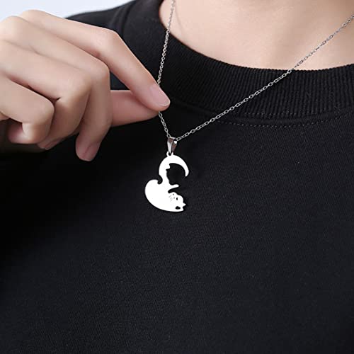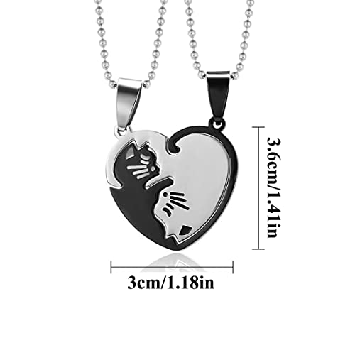 SIDQHICAC 2PCS Collana Puzzle Gatto Acciaio,Collana per Coppie con Ciondolo Gatto, Collana per Coppie in Argento Nero,Collana con Ciondolo Puzzle,Collana Gatto Yin Yang,Collana Dell'amicizia