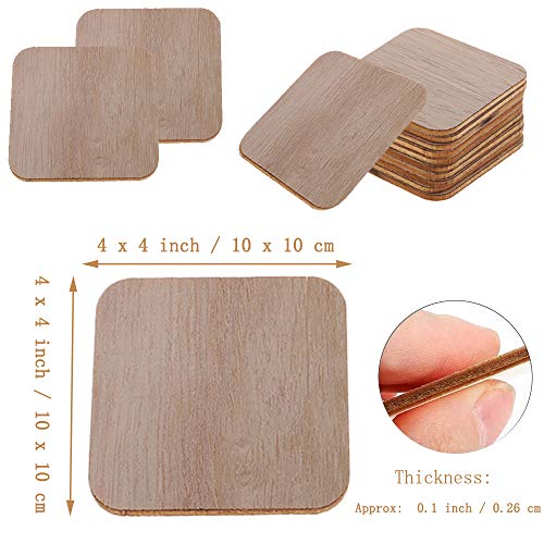 N/A Sieman 30 dischi in legno naturale, 10 cm, quadrati incompiuti per dischi di legno grezzi fai da te, pittura, intaglio