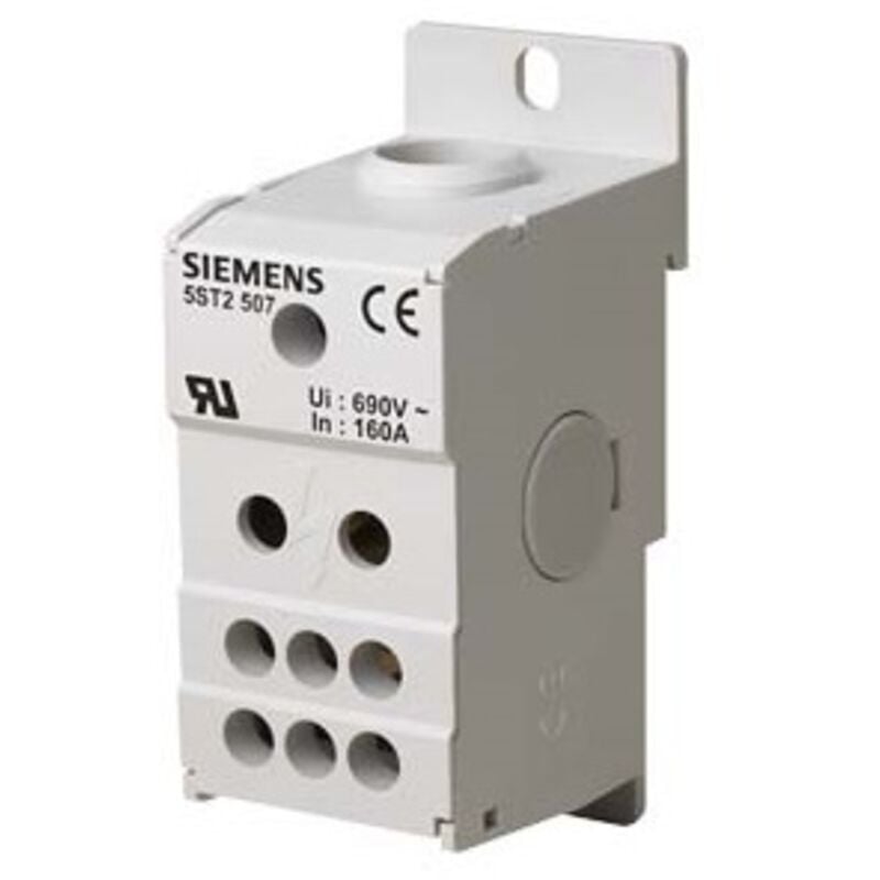 Blocco distributore a 1 polo, 160A, 690V ingresso: 1x 10-70mm2 uscita: 6x 2,5-16mm2 per montaggio su guida DIN