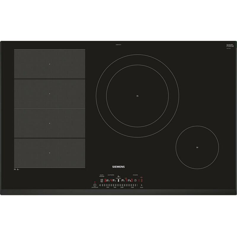 Piano cottura SIEMENS EX851FEC1F Piano cottura a induzione con nuove funzioni innovative, per una grande flessibilità in ogni situazione FryingSensor: mantiene automaticamente la temperatura desiderata della pentola. Nessun rischio di bruciare il cibo Design: Display digitale Comando TouchSlider Potenza: 4 piastre a induzione di cui 1 zona di cottura flex Induction (zona libera dotata di 4 induttori ovali) Zone di cottura: 1 x Ø 400 mm x 240 mm, 3,3 kW (PowerBoost 3,7 kW ) o 2 x Ø 200 mm, 2,2 kW (PowerBoost 3,7 kW), 1 x Ø 280 mm, 2,6 kW (PowerBoost 3,7 kW), 1 x Ø 145 mm, 1,4 kW (PowerBoost 2,2 kW) Comfort / Sicurezza: FryingSensor Plus: sensore di temperatura per stufe Funzione QuickStart: rilevamento automatico dei contenitori sulla zona di cottura Funzione Re-Start: in caso di arresto improvviso del piano, memorizzazione della temperatura iniziale per 4 secondi Visualizzazione dei consumi energetici 17 posizioni di impostazione PowerBoost su ogni zona Timer su ogni indicatore di