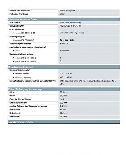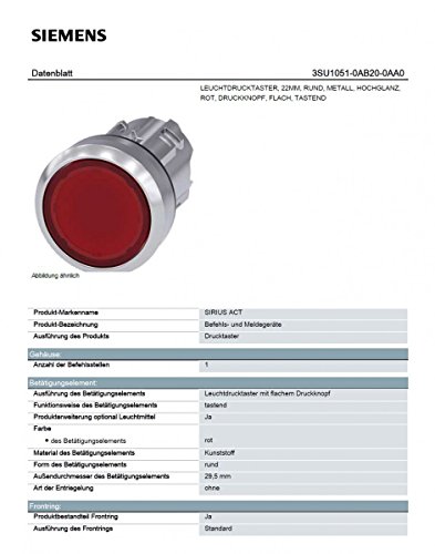 Siemens SIRIUS ATC - Pulsante 22 mm rotondo metallico/A brillante rosso pulsante rasante