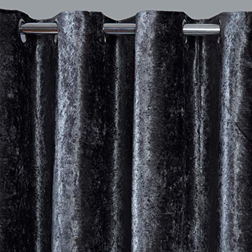Sienna Coppia di Tende in Velluto Riccio, con Occhielli sulla Parte Superiore, Completamente Foderate, Colore: Grigio Antracite, 116 x 137 cm