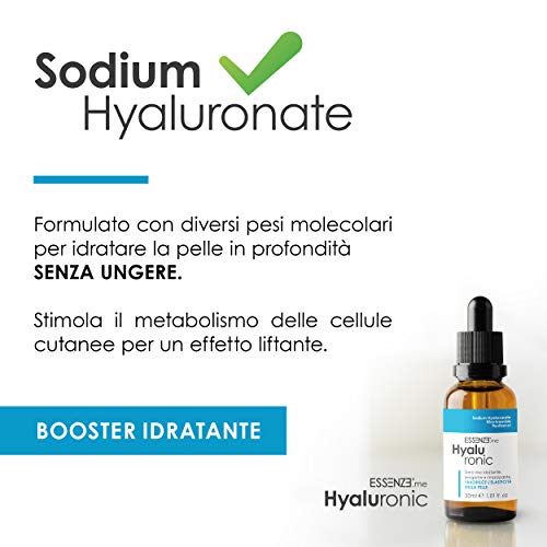 Siero Viso Acido Ialuronico Puro Effetto Antirughe Rimpolpante Con Niacinamide + Provitamina B5 Formula Idratante Concentrata Anche Per Contorno Occhi | ESSENZE Hyaluronic 30ml