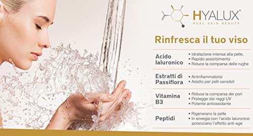 Siero Acido Ialuronico Puro Intensamente idratante, Antirughe, Riduzione rughe e righe sottili, contorno occhi e labbra. Con Passiflora, Peptidi e Vitamina B3