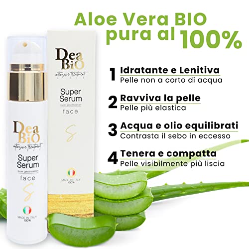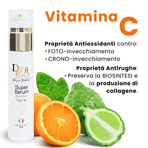 Siero Viso Antirughe e Antimacchia con Acido Ialuronico Puro Triplo Peso Molecolare, Arricchito con Vitamina C & E al Bergamotto, Booster Skincare Viso Collo e Contorno Occhi (50 ml) - DEA BIO