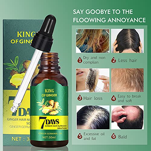 Olio germinale di zenzero: zenzero, ginseng, polygonum multiflorum e olio di semi d'uva, possono prevenire efficacemente la caduta dei capelli fornendo nutrimento alla radice dei capelli, riparando i capelli danneggiati, ripristinando la vitalità dei capelli. E rendere i capelli più sani, senza danni e aumentare i capelli.