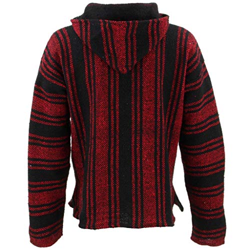 Siesta Mexican Baja Jerga red and Black Hooded Hippie top (XXL)