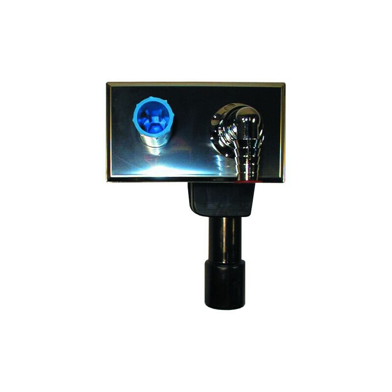 Sifone da incasso DN40/50 per lavatrice, gomito portagomma HL19-3/4', con presa d'acqua 1/2', piastra inox 100x180mm, involucro di protezione, profondita minima d'installazione 75mm