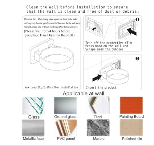 ✅ Risparmio di spazio: il supporto per asciugacapelli a parete facilita l'uso e la conservazione dell'asciugacapelli in modo efficiente e consente di risparmiare spazio in bagno.