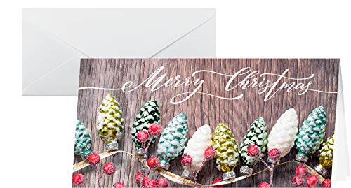 25 cartoline natalizie Christmas Garland in cartoncino da 220 g con pigne verdi e bianche come motivo centrale