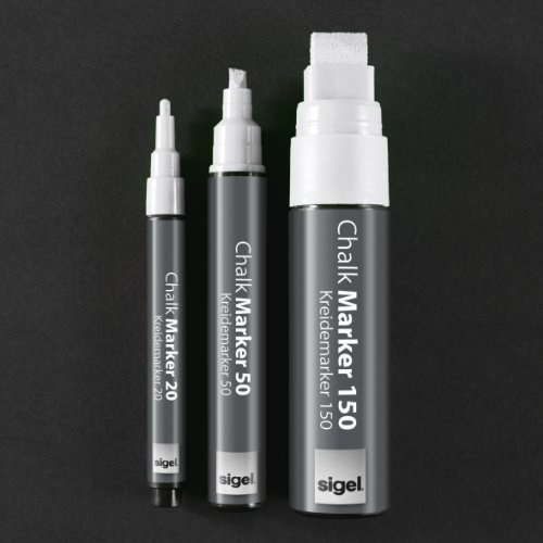 Un Mercatore a gesso liquido con punto rotonda, per tratti da 1-2 mm e un mercatore a gesso liquido con punta scalpello, per tratti da 1-5 mm