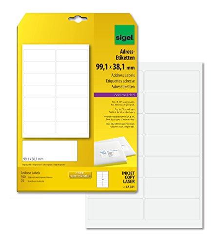 SIGEL LA321 Etichette per indirizzi, bianco, angoli arrotondati, 99.1x38.1 mm (A4), 350 et.=25 fg.