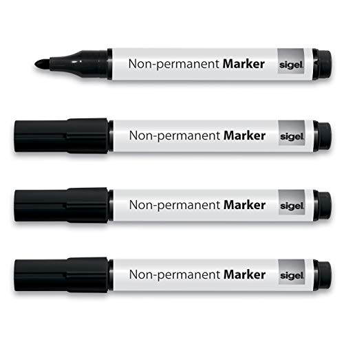 SIGEL MU181 Marcatore per lavagna bianca, non permanenti, buon potere coprente, punta tonda 1-3 mm, 4 pz., nero