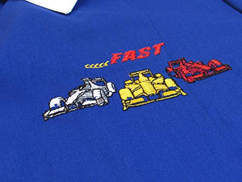 Siggi Grembiule Scuola Bambino Ricamo Auto Formula 1, 6/12 Anni Blu con Polsini e Tasche Laterali - 3302 (6 Anni - 116 cm)