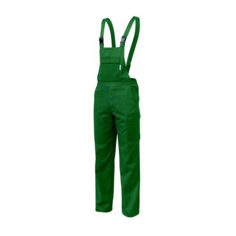 100%25 cotone 270 gr/mq Misura 54 Elastico dietro Apertura laterale con bottone e occhiello Tasche chiuse con pattina e velcro Bretelle elasticizzate regolabili Tasca porta metro (flessometro CE DPI di I?½ categoria per rischi minimi UNI EN ISO 13688:2013
