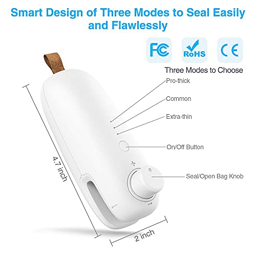 Sigilla Sacchetti, Mini Sigillante Portatile per Sacchetti di Patatine Cucina Sigillatrice a Caldo Sottovuoto Macchina di Plastica Termosaldatrice Sigillatore per Alimenti Snack e Cereali (bianco)