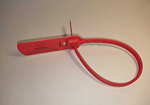 Sigillati di sicurezza in plastica/polipropilene, 100 pezzi, EBSSO | VENOM300 | Rosso | Lunghezza 30 cm | Inserimento metallico | flange di sicurezza | Numerati con laser | Alta qualità