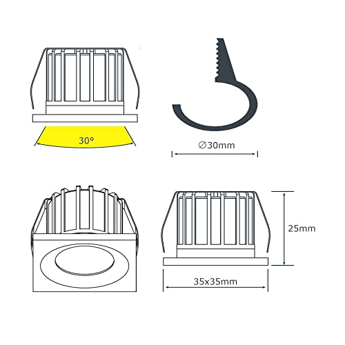 INSTALLAZIONE: I mini spot led sono alimentati a 220/230V AC, si collegano direttamente alla linea elettrica senza bisogno di alimentatore esterno o driver. Installazione da incasso, foro di alloggiamento diametro 3 cm. DIMMERABILE con dimmer TRIAC.
