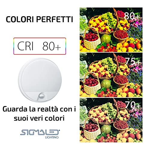 Sigmaled lighting, Plafoniera LED 10W con SENSORE di Movimento per esterni, Resistente all'acqua, Luce Naturale 4000K, 900Lm, Applique TONDA IMPERMEABILE IP54 da parete