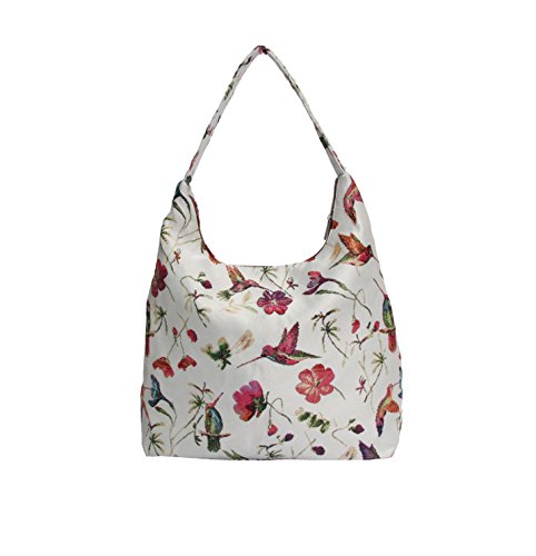 Signare Tapestry Arazzo Arazzo Borsa a Tracolla Donna, Borse Tote per Donne, Hobo bags con Disegni Floreali (Colibrì)