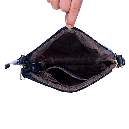 l'interno presenta una tasca scorrevole e una tasca con zip per riporre oggetti. Questa piccola borsa da donna è dotata di un cinturino regolabile in finta pelle vegana, da indossare come borsa a tracolla o come borsa a tracolla.