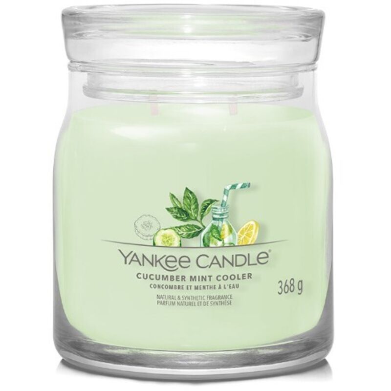Candela Giara Media Signature Cucumber Mint Cooler di Yankee Candle è una fragranza agrumata. Assaporate l'aroma di una rinfrescante bevanda, con frizzanti accenti al profumo di cetriolo, limone e menta: perfetta per le calde giornate d'estate al parco. Note di testa: Limone, Eucalipto, Arancia, Menta, Pompelmo Note di cuore: Cetriolo, Gelsomino Note di fondo: Prugna selvatica, Muschio bianco Le note di testa sono le note profumate che si percepiscono al primo impatto, le note di cuore costituiscono la struttura principale della fragranza, mentre le note di fondo ne costituiscono la struttura finale. Questo rinfrescante ritocco dell'iconico design a giara è progettato per creare la miglior esperienza ad oggi. Questa candela dal peso di 567g realizzata con due stoppini e un mix di altissima qualità di cera di soia il quale fornisce una stupenda fragranza a lunga durata e una meravigliosa atmosfera. Le etichette illustrate a mano e i colori della cera vivaci si abbinano perfettamente
