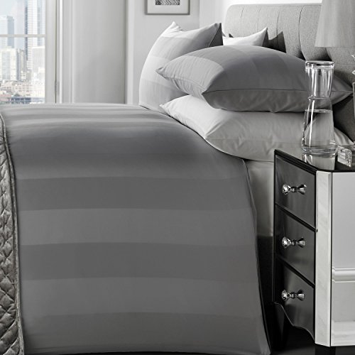 Signature 'Padova' 100% Cotone Largo Stripe Set Copripiumino Singolo, Argento