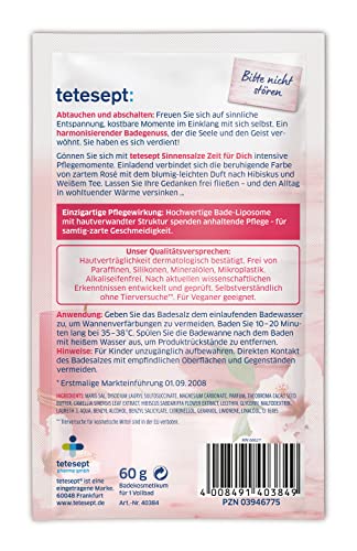 Contenuto della confezione: 10 x 60 g di sale sensoriale "Zeit für Dich" di tetesept, con ingredienti nutrienti per pelle vellutata e delicata, cristalli in polvere sottili e facilmente solubili