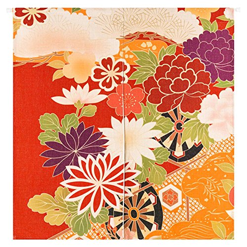 Signor Fantasy Cotone e Lino Noren Giapponese Porta tappezzeria Tenda divisorio per Cucina casa, Cotone Lino, Flower 1, 85x90 cm