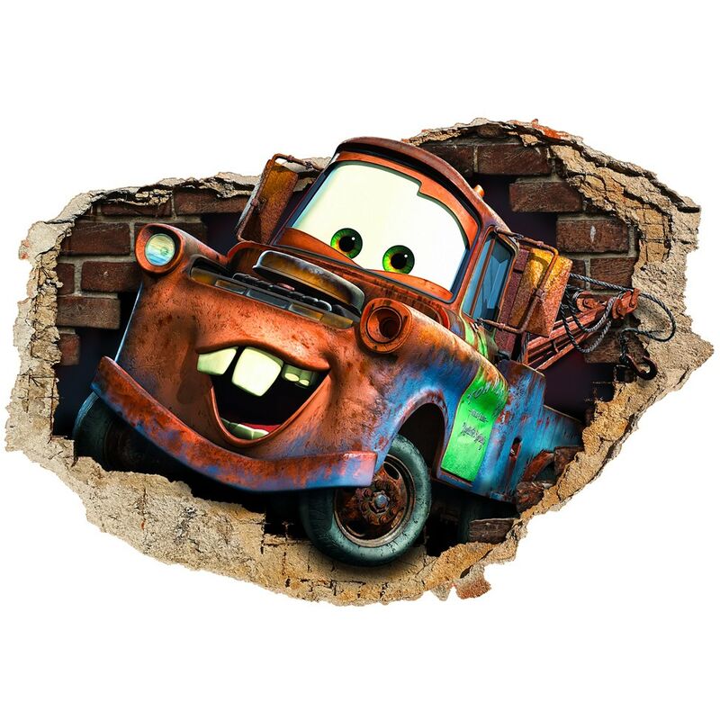 Adesivo in pvc effetto muro 3D per decorazione pareti con soggetto Carl Attrezzi detto Cricchetto, personaggio del film animato Cars. Misura: 145 cm di base x 100 cm di altezza. I nostri wall stickers sono realizzati con adesivi da 100 micron, con collante da muro, protetti nella parte superficiale con una laminazione opaca antigraffio e antiriflesso. l'intaglio di precisione è realizzato con plotters a controllo numerico. Gli stickers adesivi vengono spediti arrotolati e protetti in tubi e anime di cartone molto resistenti per essere protetti durante il trasporto. Prima di applicare la pellicola adesiva, assicurarsi che la superficie del muro sia liscia e priva di imperfezioni, granelli, residui di pittura e polveri,successivamente consigliamo di servirsi di una spatola in plastica morbida per far aderire la pellicola al muro. Dopo 24 ore il collante inizierà a polimerizzare completamente sulla parete e l'adesione diventerà perfettamente stabile. Da applicare su parete con superficie
