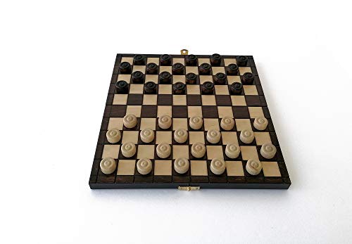 Set di signore L - Scacchiera di dimensioni 28 x 28 cm, fabbricazione artigianale in legno di fascino smalto eco-responsabile, vassoio pieghevole e nomade, facile da riporre gioco di viaggio.