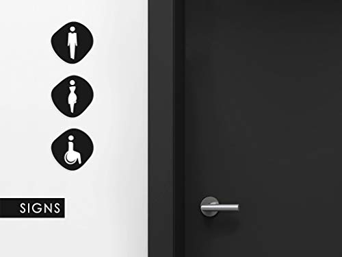 Signs - Elegant, Set 3X- Targa Bagno Uomo Donna Disabili a Rilievo- Segnali Bagno Adesivi Toilette Uomo Donna Disabile - Cartelli Bagno Uomo Donna Disabili - Adesivi WC Disabili (Prime Sasso - Nero)