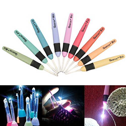 Signstek 9PCS Crochet Lite Uncinetti Crochet Lite Value Pack, Lighted Crochet Hooks for DIY Weave Yarn
