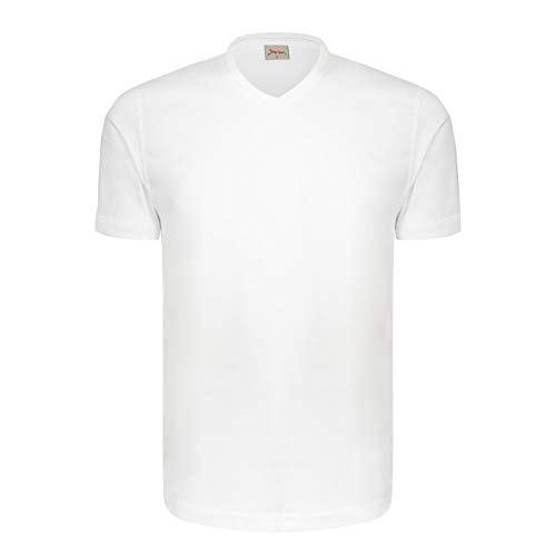 SIGNUM - Maglietta con scollo a V, confezione doppia, in puro cotone, colore: bianco