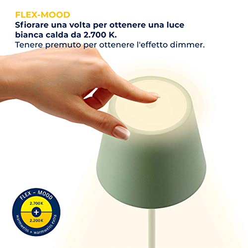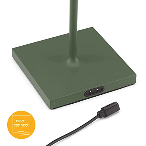 SIGOR Nuindie - Lampada da tavalo a batteria LED dimmerabile per interni ed esterni, altezza 38 cm, ricaricabile con Easy-Connect, durata luce 24 ore, Verde abete