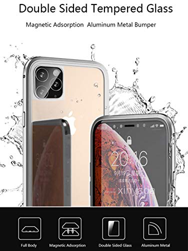 SiGrid Cover per iPhone 11, Custodia Adsorbimento Magnetico Paraurti in Metallo Fronte e Retro in Vetro Temperato Flip Custodia Magnete Incorporato 360 Gradi Protezione Case, Argento