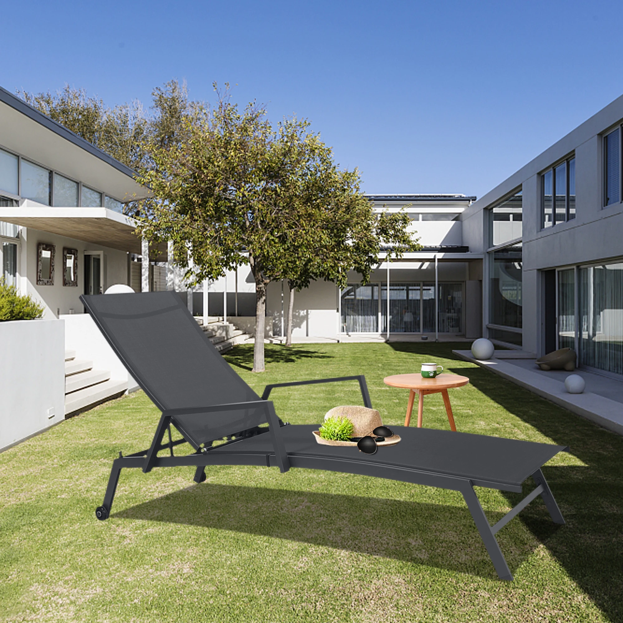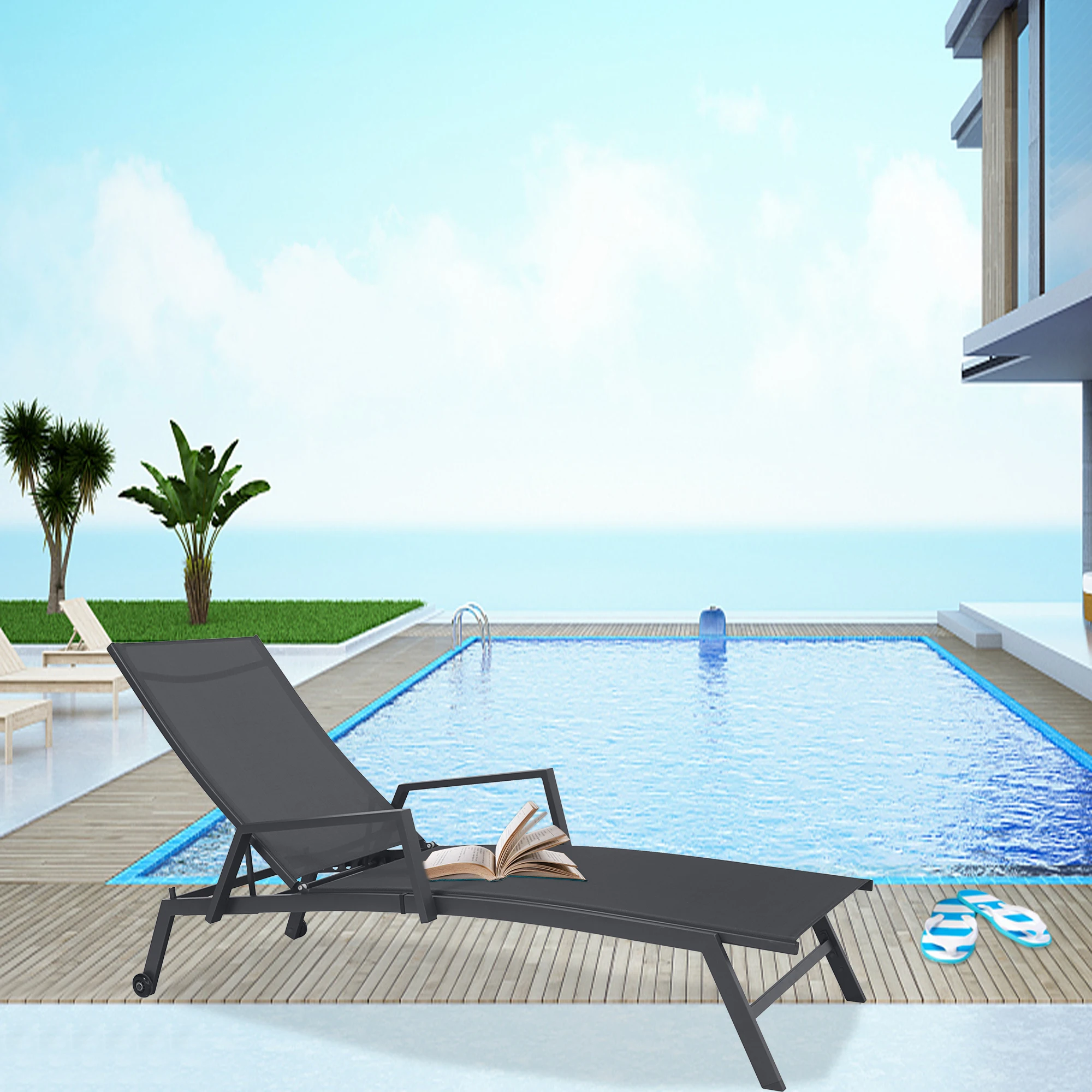 Sigtua Lightweight Frame Outdoor Garden Sun Lounger with Armrest Adjustable Backrest Leisure Relax Chair Outdoor Garden Lounger