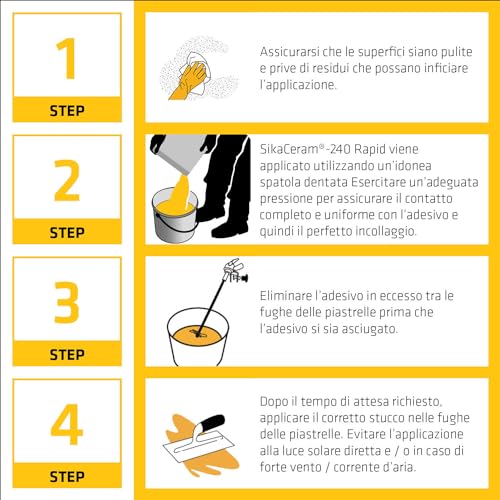 APPLICAZIONI - SikaCeram-240 Rapid è un adesivo cementizio perfetto per l'incollaggio di piastrelle su supporti cementizi, anidrite, altre piastrelle ceramiche e gesso
