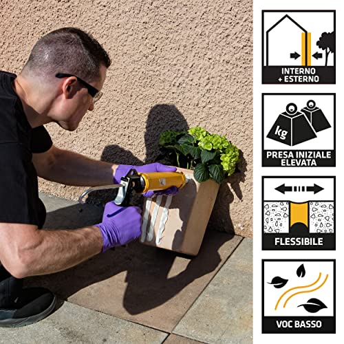 AFFIDABILE E PROFESSIONALE - Creato specificatamente per applicazioni edili, l'adesivo offre un'elevata presa iniziale ed è indicato per il fissaggio di oggetti pesanti senza fissaggi temporanei