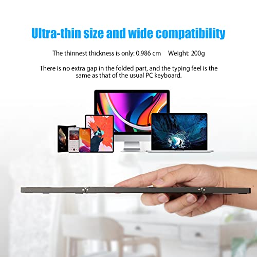 【PORTABILE E LEGGERO】Triplice magnetico si piega facilmente in una borsa, in una borsa da viaggio o in una tasca. Progettata per la portabilità, le dimensioni sono un po' ridotte. La dimensione della tastiera non piegata è di 30 x 10 x 1 cm, se vi dispiace, vi preghiamo di acquistare con cautela!