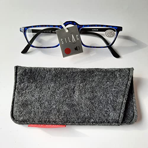 Occhiali da lettura marca SILAC. Ti aiutiamo a trovare il giusto paio di occhiali da lettura per te. Abbiamo diverse dimensioni di occhiali, modelli e diottrie. Godersi ogni momento della vita: leggere un buon romanzo, ripetere gesti precisi, ecc. Viene fornito con una custodia in feltro grigio per proteggere gli occhiali.